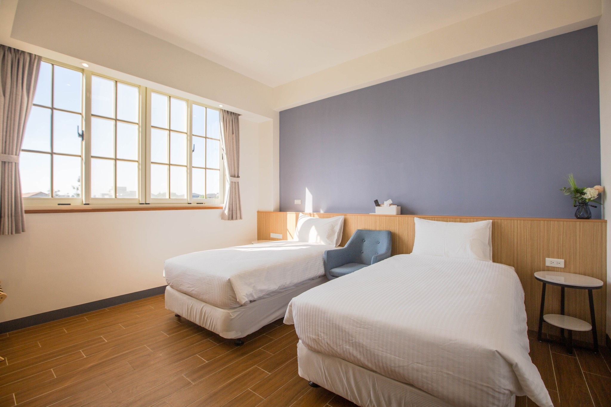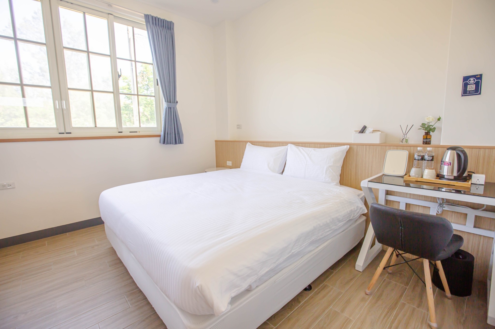 房型介紹 1A 精緻商務雙人房 1A房間位於民宿1樓,顏色採無印白風格設計,得利乳膠漆粉刷,仿木紋磁磚,一張五星飯店(德泰彈簧床)加大雙人床、感應卡式超厚度60mm氣密防火隔音門、高級100%遮光布簾(台灣製造)、選用乾濕分離日本TOTO衛浴及Panasonic暖風機、日本TESCOM吹風機、溫水沖洗馬桶座(Panasonic)、隱藏式日立冷暖空調、32吋MOD電視、電熱水壺、實木行李架、化妝桌椅、化妝鏡、吊衣架,適合出差小資族。 2A高級加大雙人陽台房 2A房間位於民宿2樓,顏色採翡翠藍風格設計,得利乳膠漆粉刷,附有開闊陽台及舒適桌椅,可欣賞花園美景,仿木紋磁磚,一張五星飯店(德泰彈簧床)加大雙人床,感應卡式超厚度60mm氣密防火隔音門、選用乾濕分離日本TOTO衛浴及Panasonic暖風機、溫水沖洗馬桶座(Panasonic)、高級100%遮光落地布簾(台灣製造)、日本TESCOM吹風機、隱藏式日立冷暖空調、43吋MOD智慧液晶電視、懶人沙發椅、實木行李架、電熱水壺、化妝桌椅、化妝鏡、吊衣架,適合放鬆度假族。 2B精緻浪漫雙人房 2B房間位於民宿2樓,顏色採浪漫粉風格設計,得利乳膠漆粉刷,仿木紋磁磚,一張五星飯店(德泰彈簧床)加大雙人床,感應卡式超厚度60mm氣密防火隔音門、選用乾濕分離日本TOTO衛浴及Panasonic暖風機、溫水沖洗馬桶座(Panasonic)、日本TESCOM吹風機、高級100%遮光布簾(台灣製造)、隱藏式日立冷暖空調、43吋MOD智慧液晶電視、懶人沙發椅、實木行李架、電熱水壺、化妝桌椅、化妝鏡、吊衣架,適合甜蜜情侶、夫妻族。 2C精緻高級雙床房 2C房間位於民宿2樓,顏色採靈性藍風格設計,得利乳膠漆粉刷,仿木紋磁磚,二張五星飯店(德泰彈簧床)加大單人床,感應卡式超厚度60mm氣密防火隔音門、選用乾濕分離日本TOTO衛浴及Panasonic暖風機、溫水沖洗馬桶座(Panasonic)、日本TESCOM吹風機、高級100%遮光布簾(台灣製造)、隱藏式日立冷暖空調、43吋MOD液晶智慧電視、實木行李架、沙發椅、電熱水壺、化妝桌椅、化妝鏡、吊衣架,適合商務出差族、好友共住。 2D精緻家庭四人房 2D房間位於民宿2樓,顏色採英國藍風格設計,得利乳膠漆粉刷,仿木紋磁磚,二張五星飯店(德泰彈簧床)標準雙人床,感應卡式超厚度60mm氣密防火隔音門、選用乾濕分離日本TOTO衛浴及Panasonic暖風機、溫水沖洗座(Panasoinic)、日本TESCOM吹風機、高級100%遮光布簾(台灣製造)、隱藏式日立冷暖空調、43吋MOD液晶電視、懶人沙發椅、實木行李架,電熱水壺、化妝桌椅、化妝鏡、吊衣架,適合小家庭出遊。